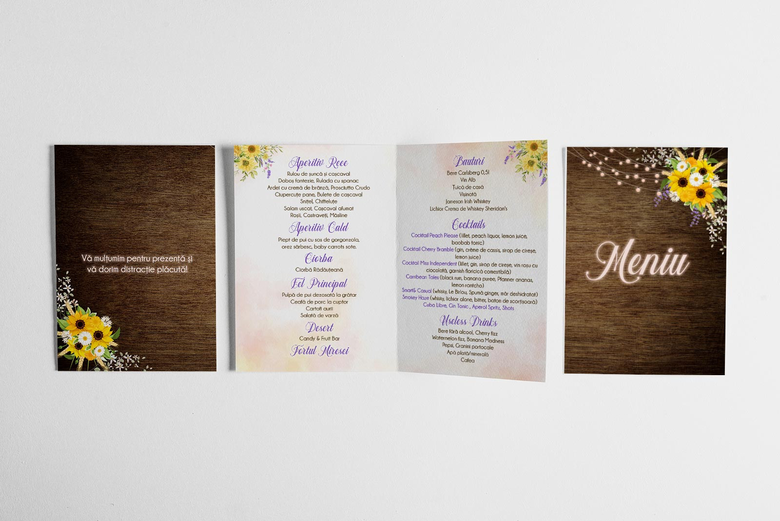 Meniu personalizat de nuntă